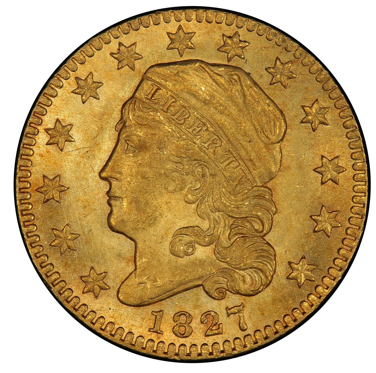 | 1827 Capped Head Left Quarter Eagle | 2,800 | 92% gold