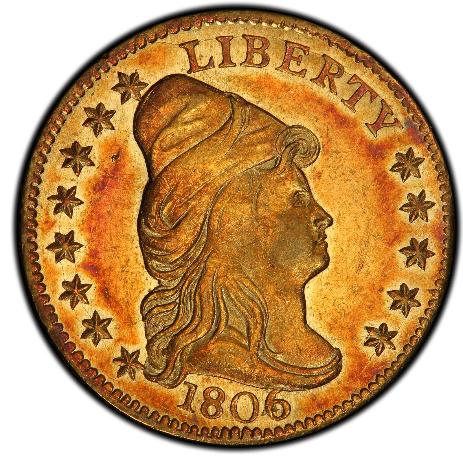 | 1806 Turban Head Gold $2.50 Quarter Eagle: 6 Over 5 – 7 Stars Left – 6 Stars Right | 480 | 92% gold